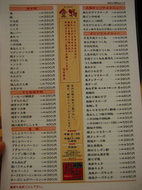 メニューが豊富です。特に焼鳥の種類がめちゃめちゃ多いです。