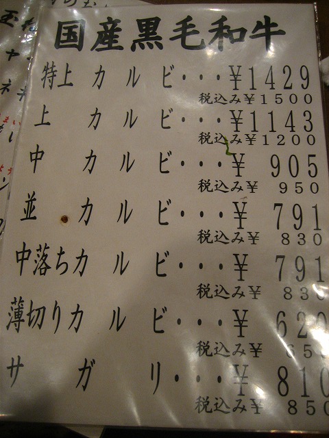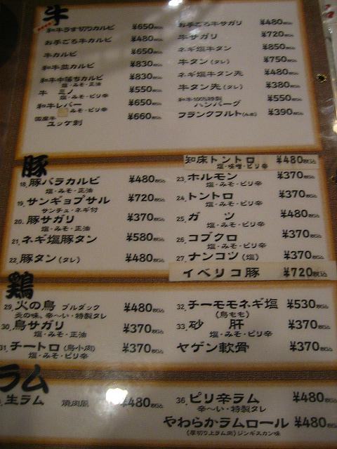 高級そうなお肉までメニューが多彩です。