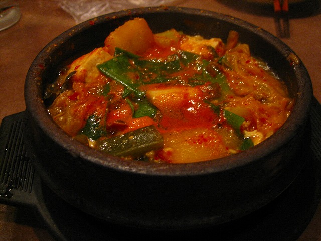チゲですが、お肉や魚が入っていないのでヘルシーです。