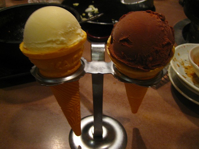 娘達は子供に無料のバニラアイスとチョコレートアイスでしめました。