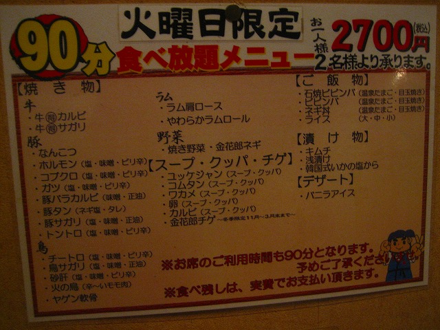 店 名:炭火焼肉金花郎