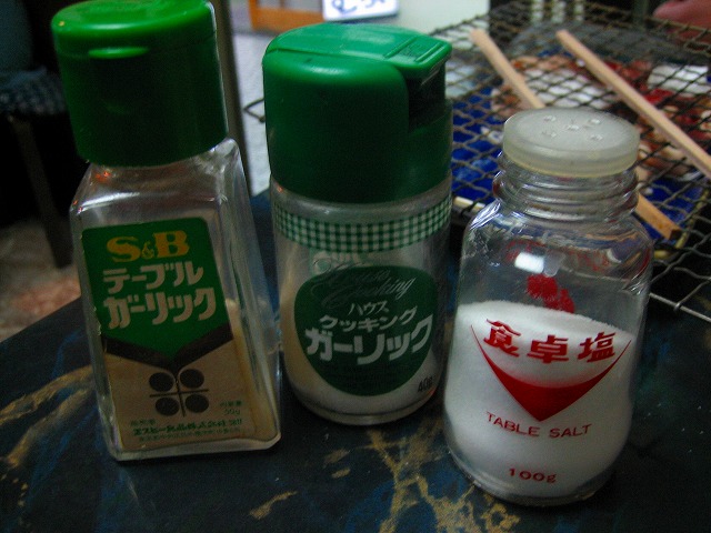 塩、味の素、ガーリックなどを使って母さんが焼きます。