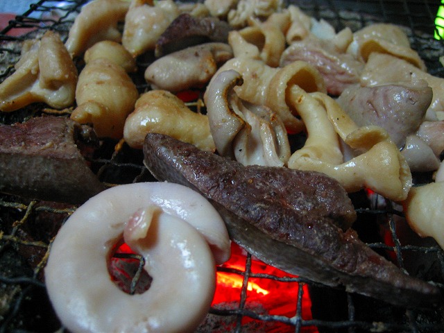 やはりここでは、塩焼きホルモンです。2人前(¥550×2)を頂きました。