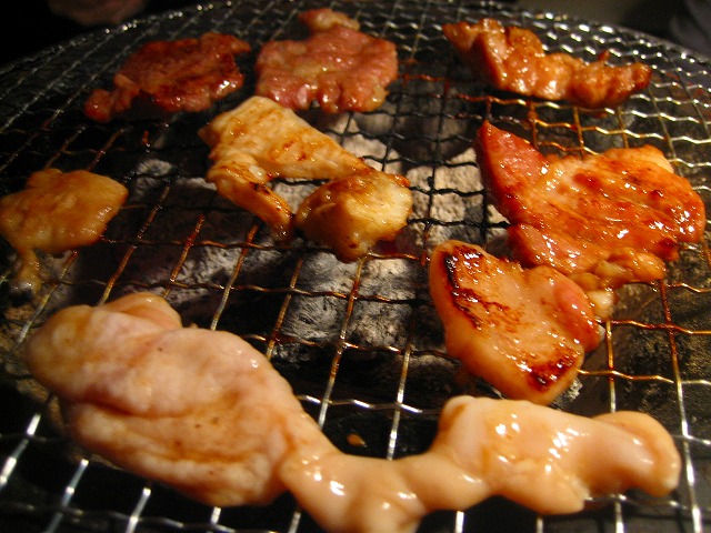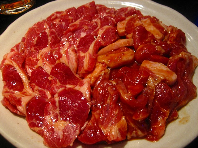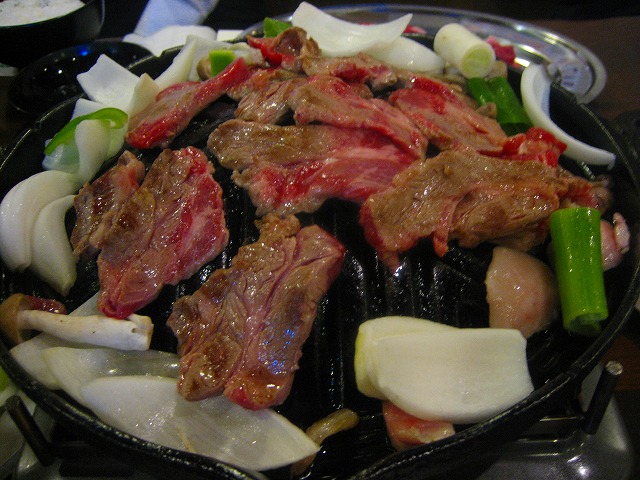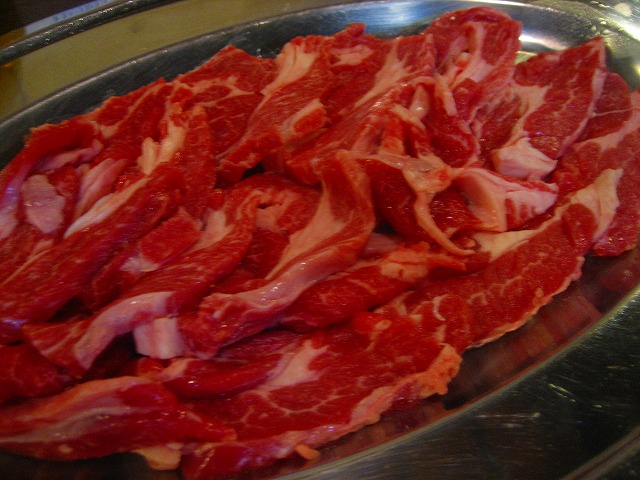 キムチなどで一杯やっていると肉が運ばれてきました。