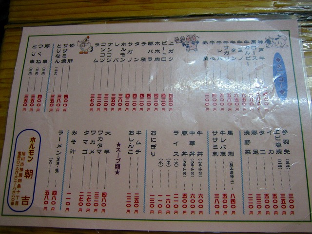 安くてうまいホルモン朝吉。我が社の近くなら、いつも行くのになぁ~。