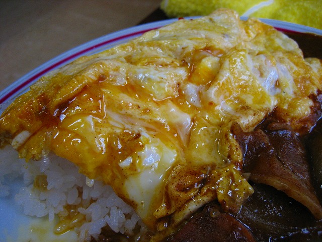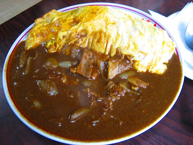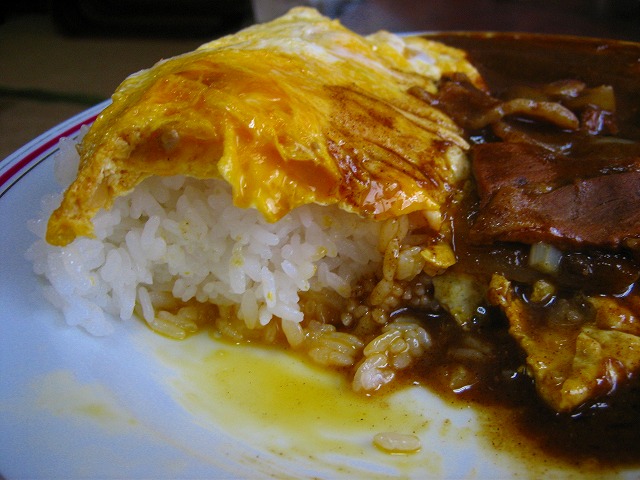 シンプルにご飯を卵焼きで巻いており、濃厚なカレーとマッチしてます。
