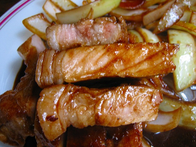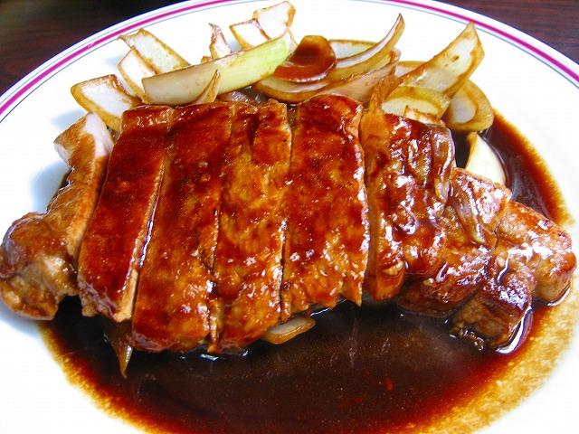 お肉は、肩ロースを使用しているので、歯応えがあり、甘めのタレが