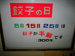 この日は、5日だったのですが、餃子が半額だったのをあとで気づきま