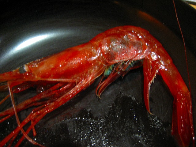 甘エビが生きていました。鮮度抜群!色も鮮やかです。