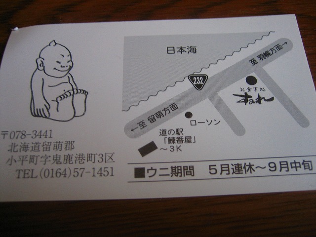 なお、うにの期間は、5月連休~9月中旬の様です。