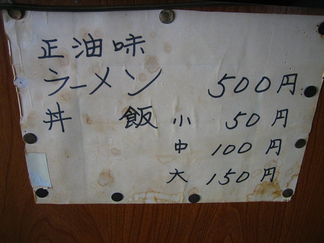 この店のメニューは、いたってシンプルです。ラーメンとご飯のみです。