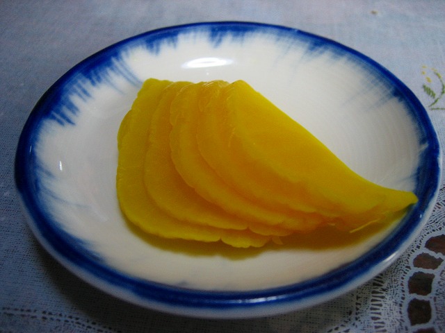 まずは、年季の入ったコップに水とライスに付く沢庵が出てきました。