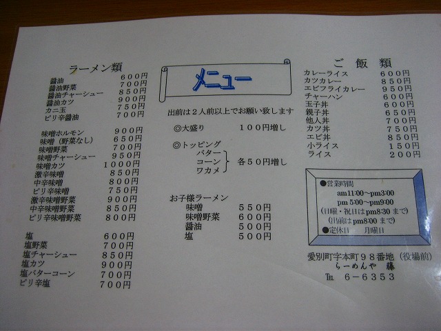 きのこの里愛別ですが、ホルモンラーメンもお勧めです!。