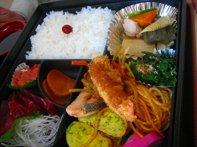 刺身も入り、バランス取れた盛りだくさんのおかずが入っています。