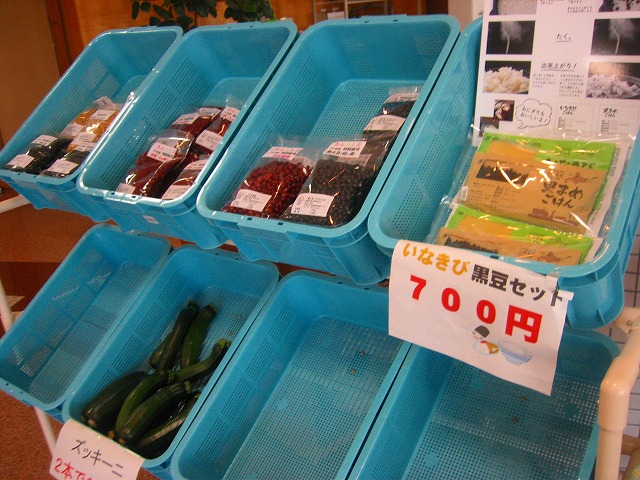 ホテルフロント前では、雑穀や野菜なども買うことができます。