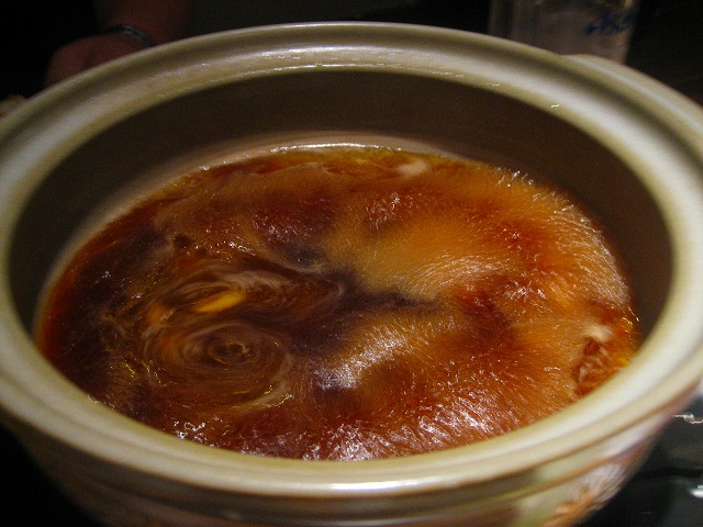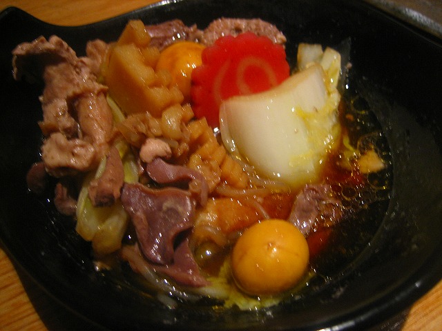 こちらは、濃い目の醤油ベースのスープにもつと野菜などを煮込みます。