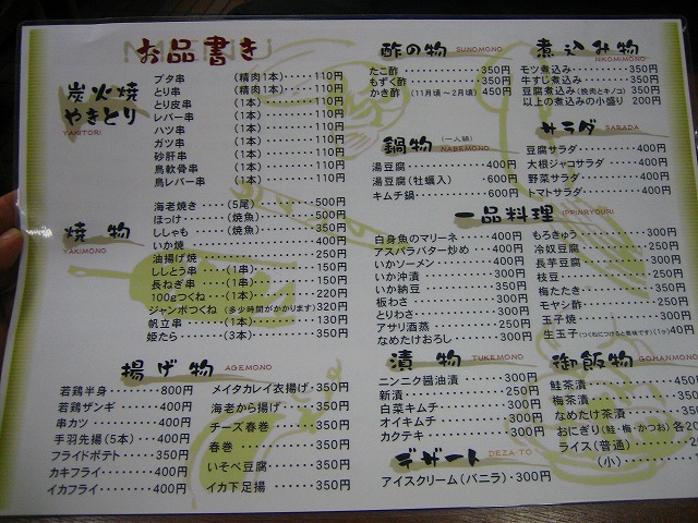 場所柄もあり、値段も内容も本店とは多少異なっています。