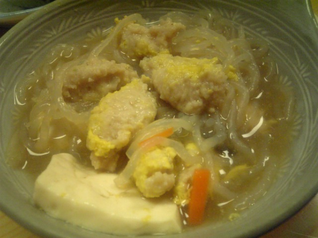 生姜の風味が効いたつくねが美味しいです。懐かしい鍋だ!。