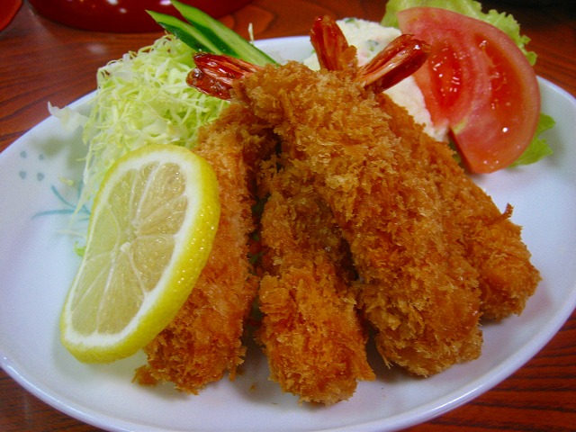 大きなエビが5本。ドンブリのご飯を覆って中が見えない位です。
