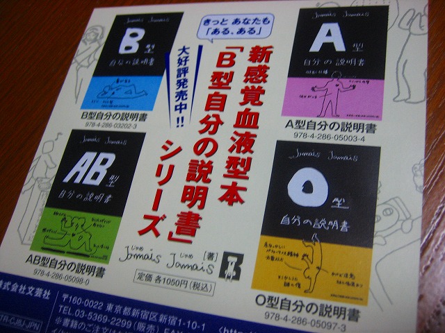 『B型自分の説明書』の書籍を購入して、OKUSAMAの分析をした位この