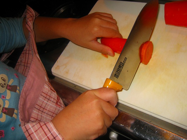 娘ができることをやってみたいと言うので、人参を切らせてみました。