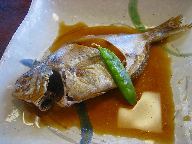 豆鯛という魚の煮付けです。小さい鯛なのか?そういう名前なのか?
