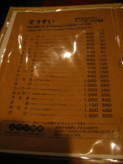 ぞうすいの店お通です。