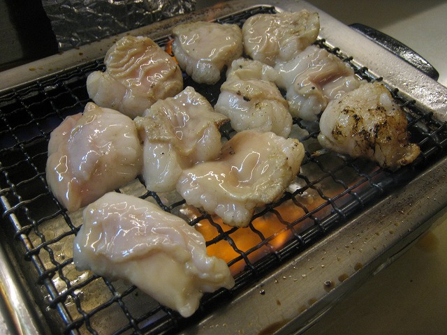 分厚いホルモンを表面がこんがりするまで焼きます。
