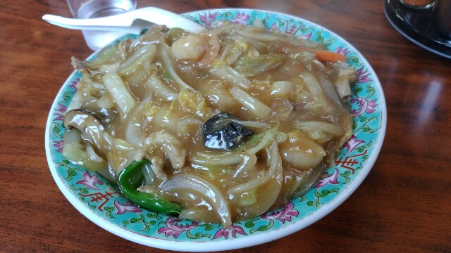 あんかけ焼きそば。あんのボリュームが多いです。