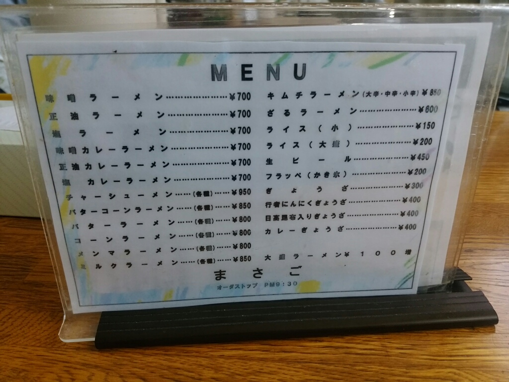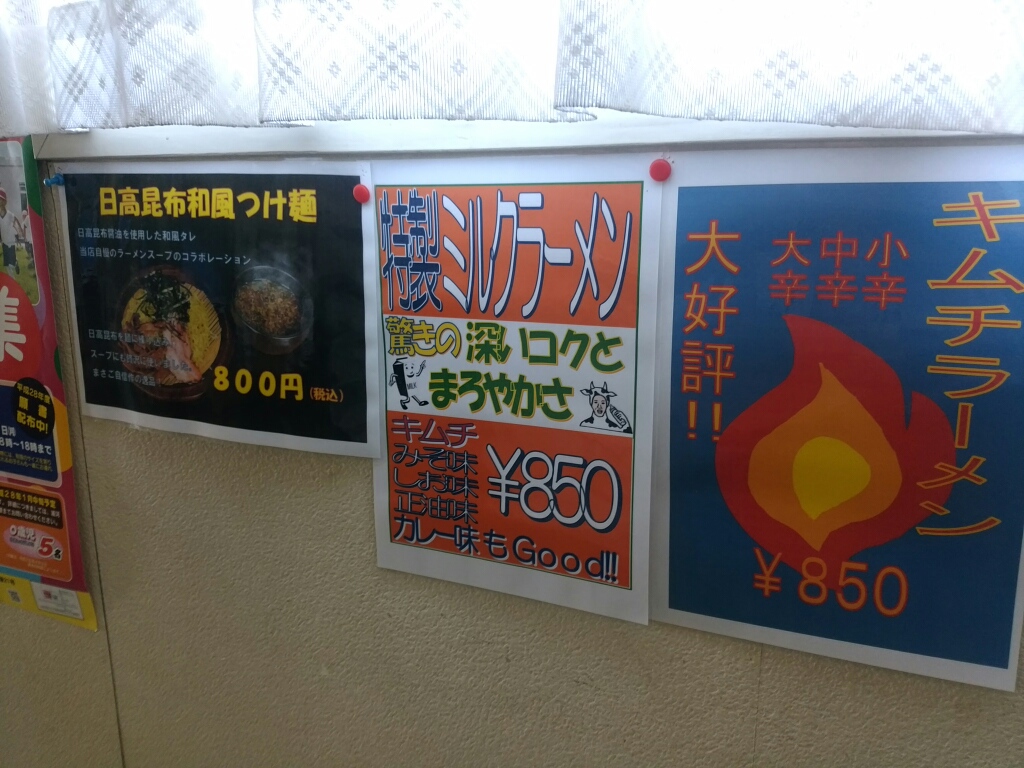 メニューは、ラーメンとぎょうざ。ミルクラーメンというのが珍しいです。