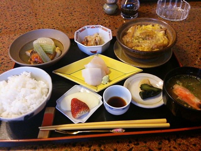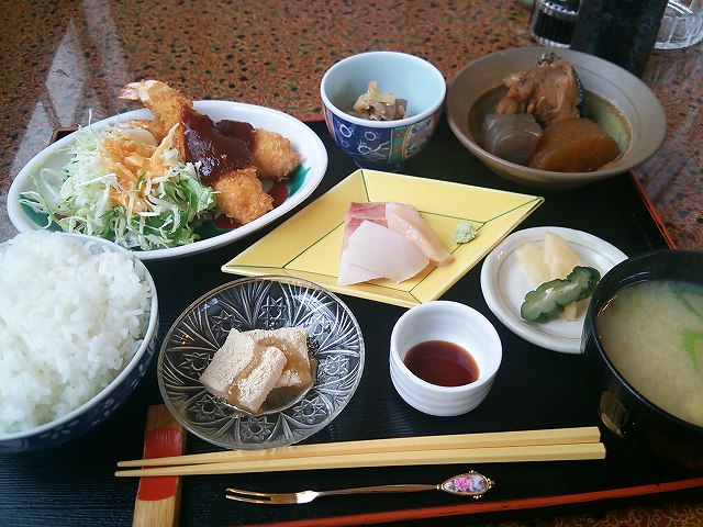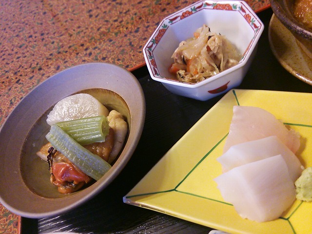出汁が素晴らしい煮物料理に新鮮なお刺身。