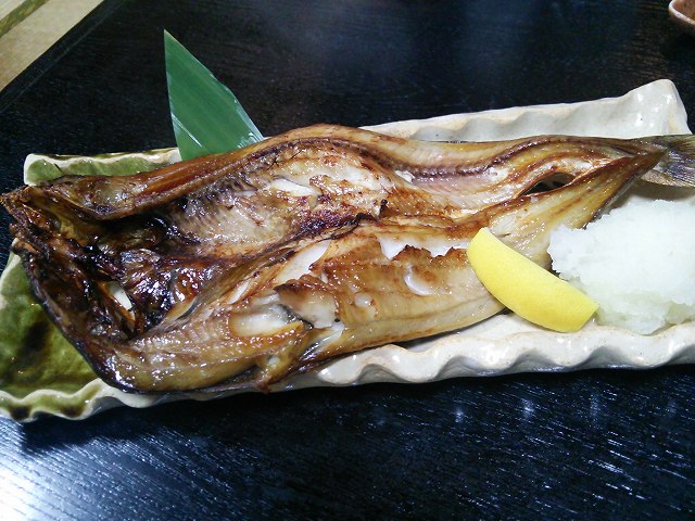 ホッケ焼きを食べながら、焼酎を飲みます。