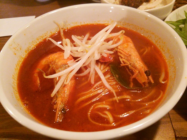 海老のスープがまろやかで、思ったほど辛くはないです。