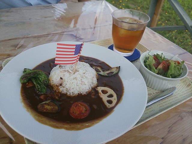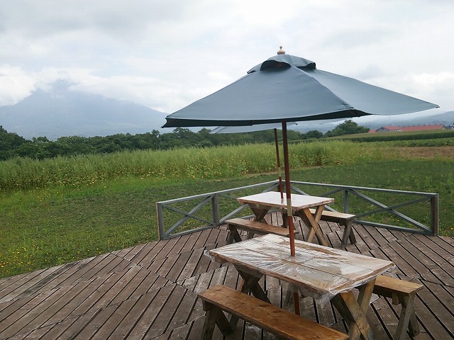 畑の中のテラスでランチを頂くことができます。