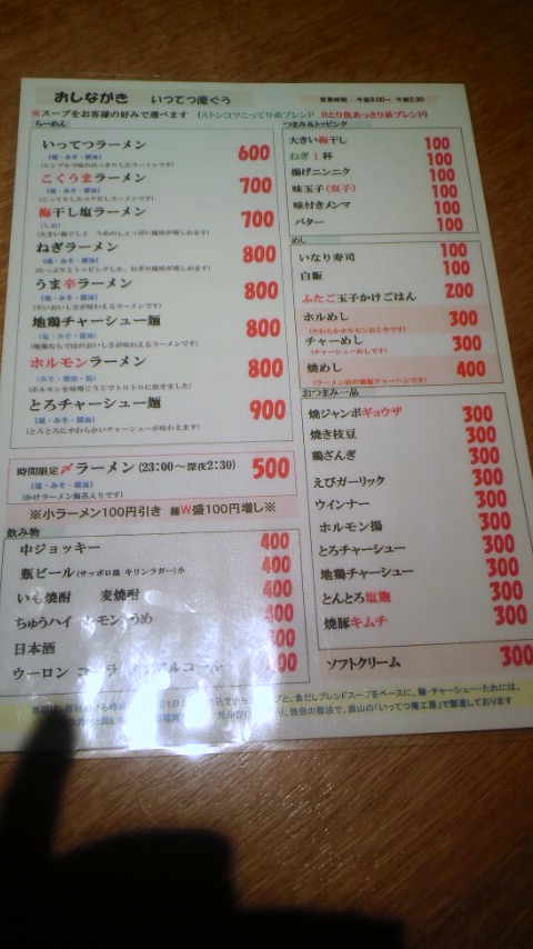 23:00~の時間限定で、チャーシューの代わりに海苔になりますが 500円とお得です。