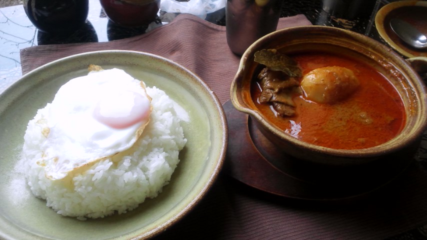 定番のチキンカリーに目玉焼きをトッピング。
