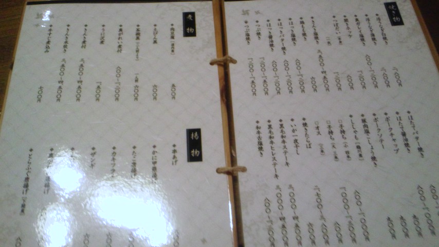 串揚げと和食のメニューです。