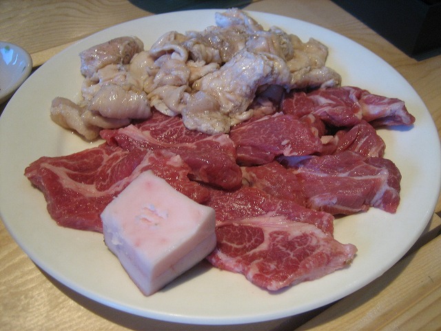 まずは、ニセコジンギスカン(上ラム)と塩ホルモンをいただきます。