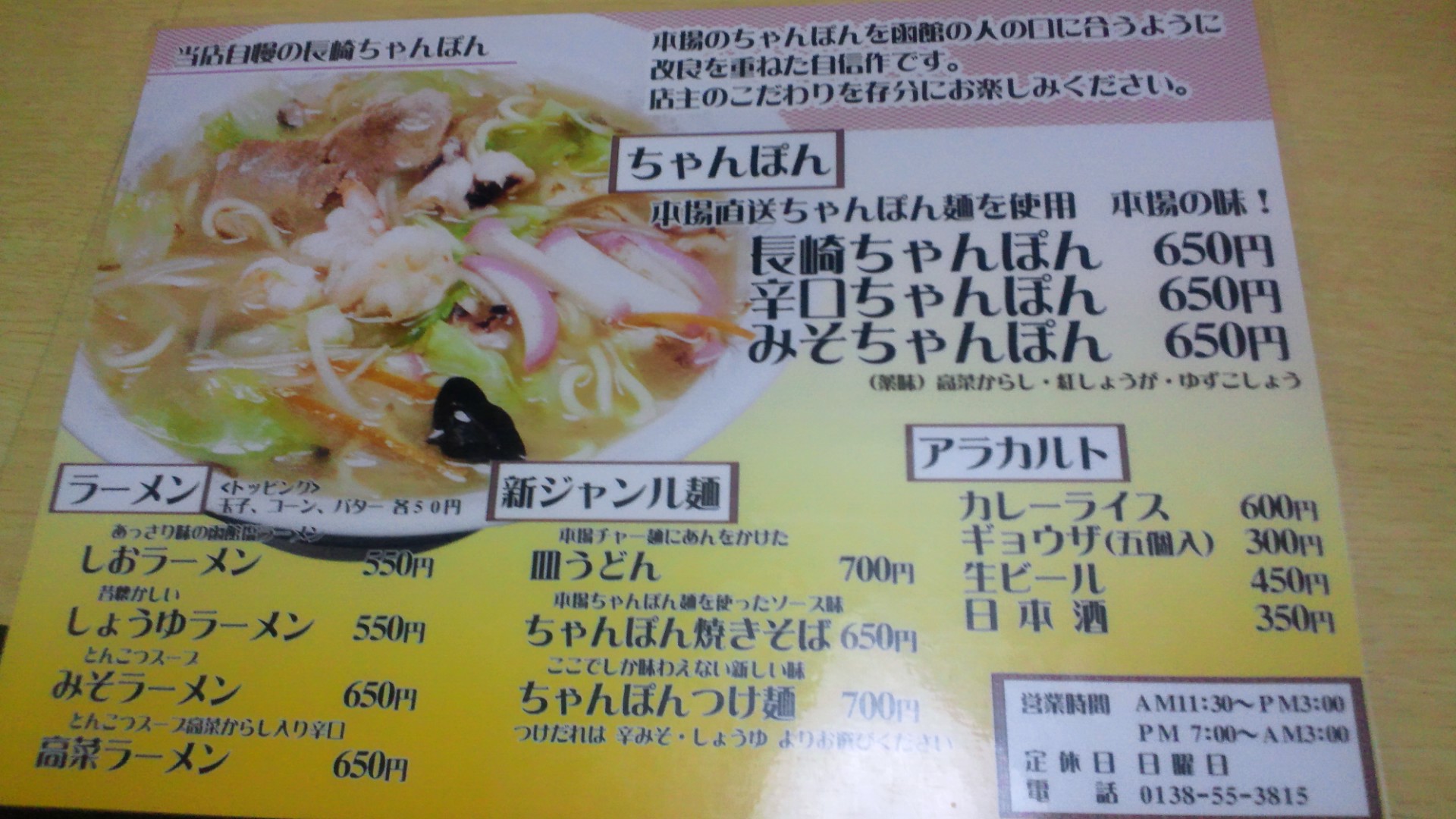 ちゃんぽんの他、ラーメンもあります。