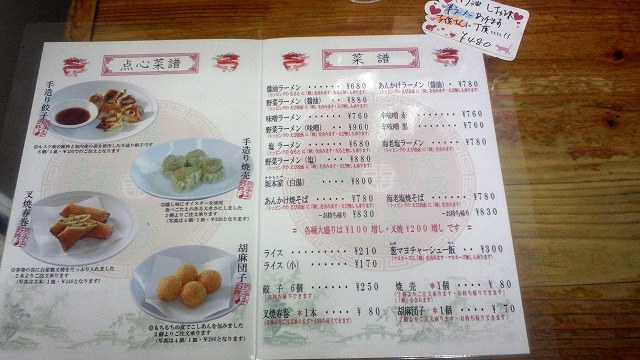 あんかけ焼きそば以外にも、ラーメン類があります。
