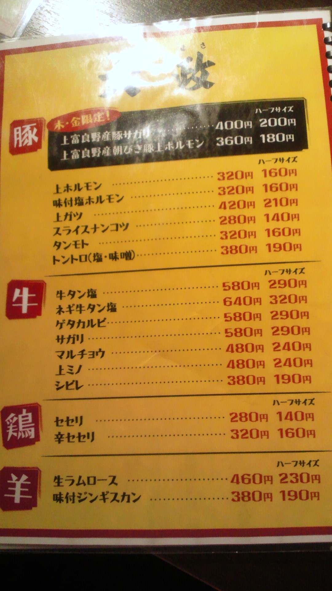 (やはり、元祖ホソ?塩ホルモンが気になります。)