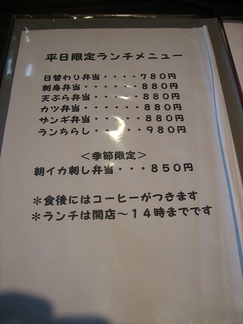 通常メニューのほか、平日限定ランチメニューもあります。
