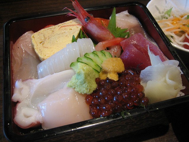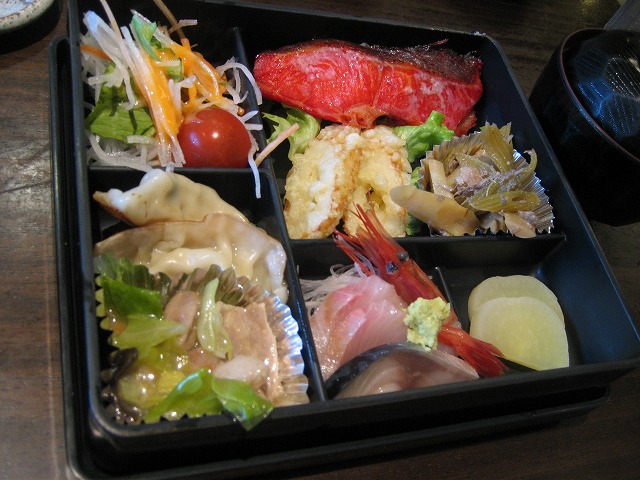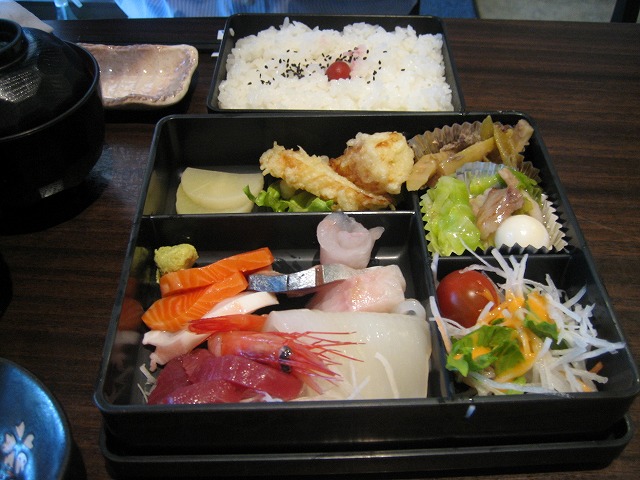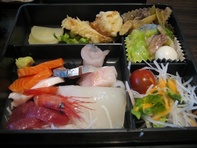お寿司屋だけあって、新鮮な刺身のほか、数種類のおかずが入ってます。