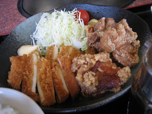 イカフライと鶏の唐揚げ定食です。