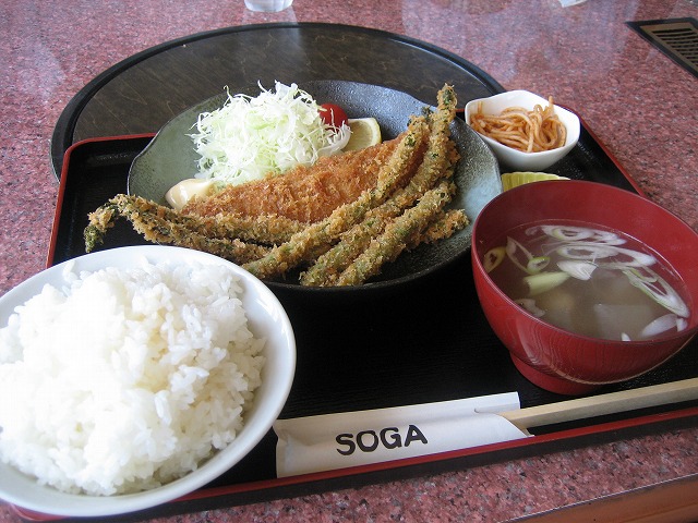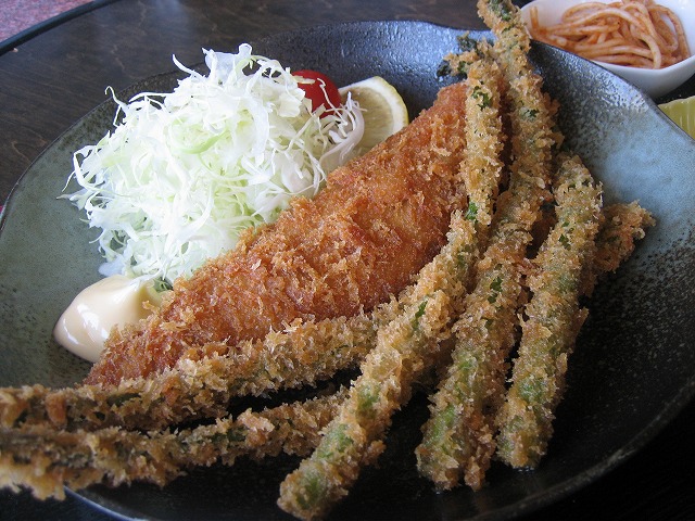 ほっけフライとアスパラフライ定食です。