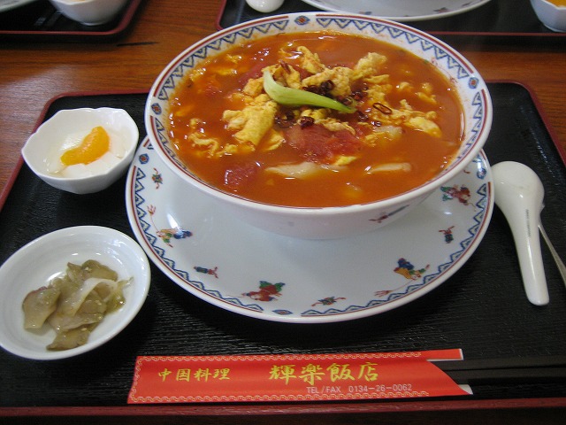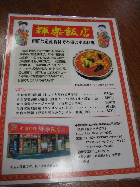 塩谷の国道5号沿いに、赤く目立ったお店、輝楽飯店です。