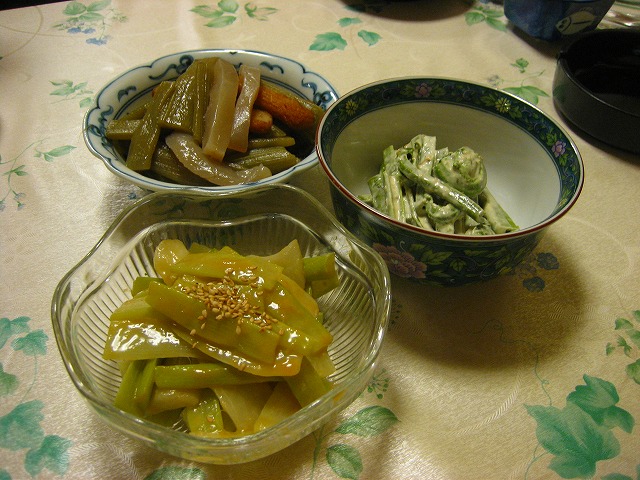 フキの煮付け、コゴミの和え物、ウドの酢みそ和えです。