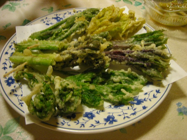 山菜の天ぷら盛り合わせです。ウド、コゴミ、タラの芽、行者ニンニク等で、さすが風味が良いですね。