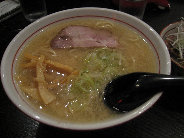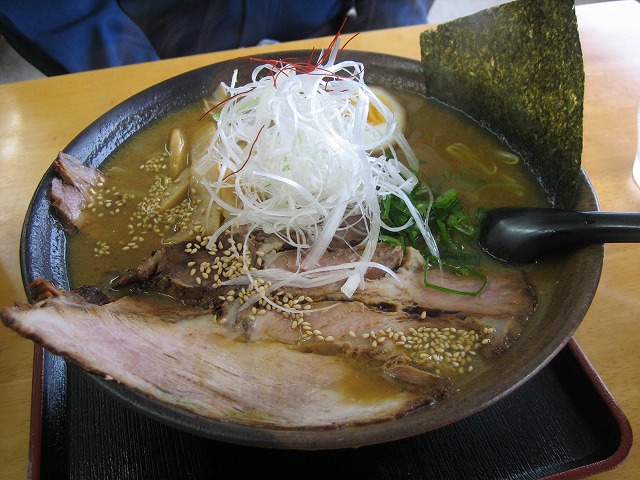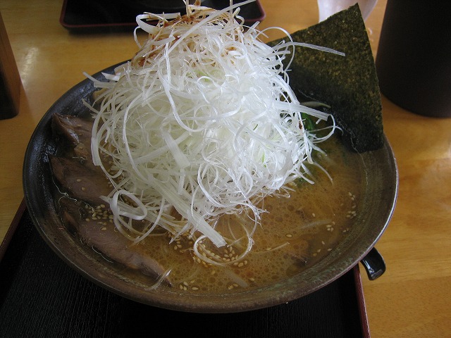 大盛りな軟白ネギがシャキシャキし、濃いめのスープと麺とが融和して美味しいですよ!。