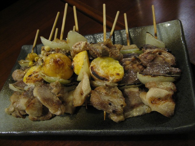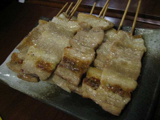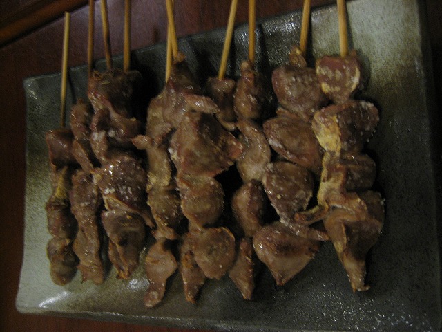 鳥もつ串です。大きさは良いのですが、バランスが…。